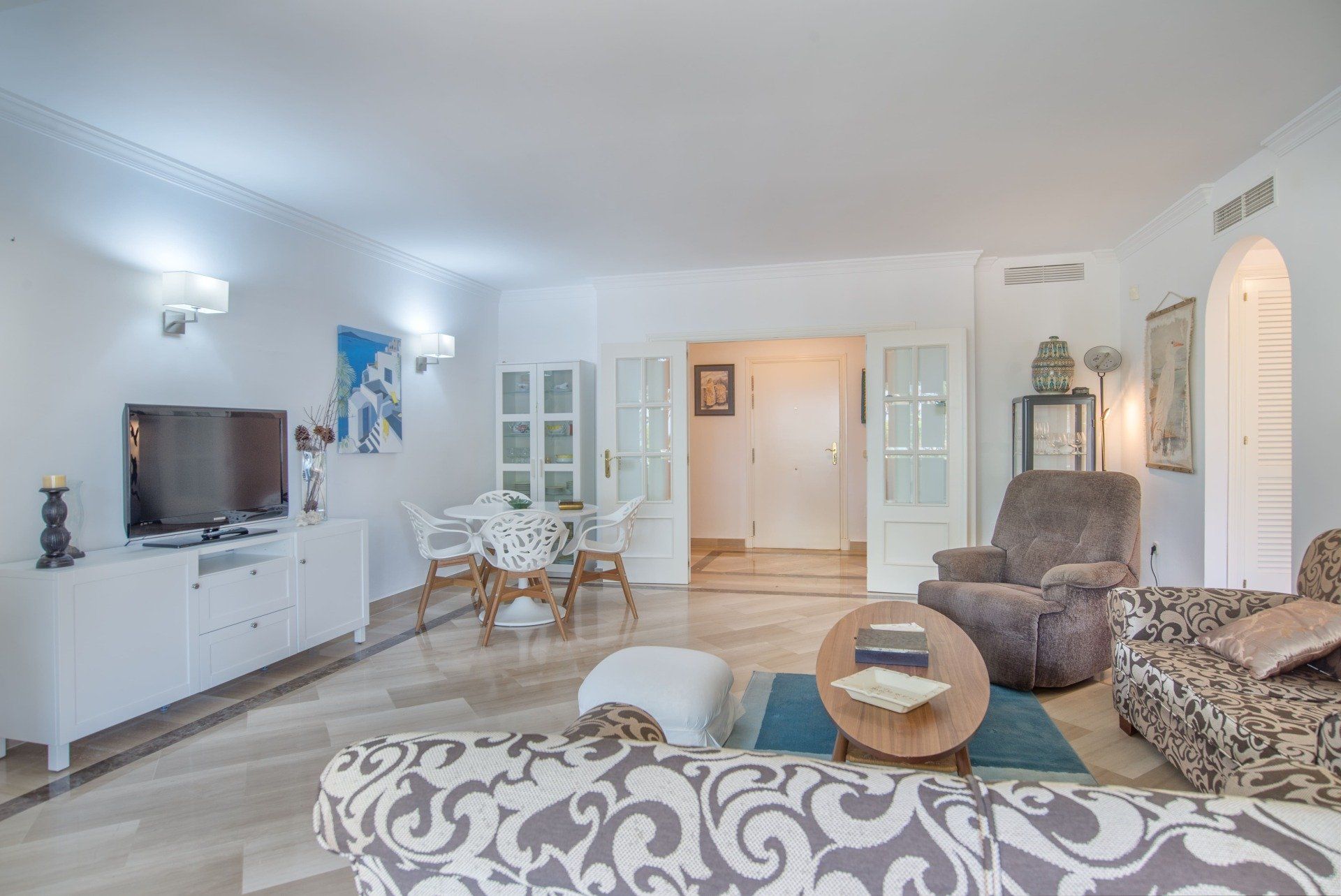 Hacienda Playa is one of the most desirable complexes in Marbella. The apartment is located a few meters from the well-known beaches of Elviria. The space (126 m2), the large amount of light and a great covered terrace with a sea view are the assets of the apartment 'Solis Maris'. It is a quiet complex with a beautiful garden and two large swimming pools. There is also a padel field.